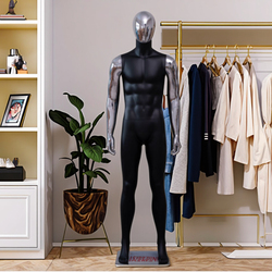 Maniquí Masculino de Cuerpo Completo, Color Negro Cromado y Plateado Dorado, para Boutique de Ropa Masculina