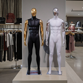 Maniquíes de Cuerpo Completo de Plástico Blanco y Negro para Trajes de Hombre, Cabeza Dorada, Detalles Musculares, Marca Shining Star, Modelo 150, Postura de Pie